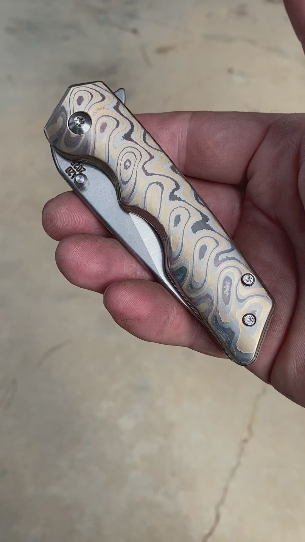 For this special piece we wanted to use a special material, so we went with Chad Nichols's Zirc/Copper/Brass "Zircume" for both scales.